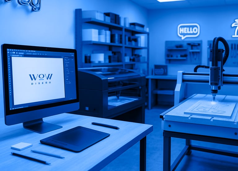 Trabajamos madera, MDF y materiales gruesos con cortes de alta precisión. Perfecto para señalética, estructuras, muebles y claro, letrero neón LED.