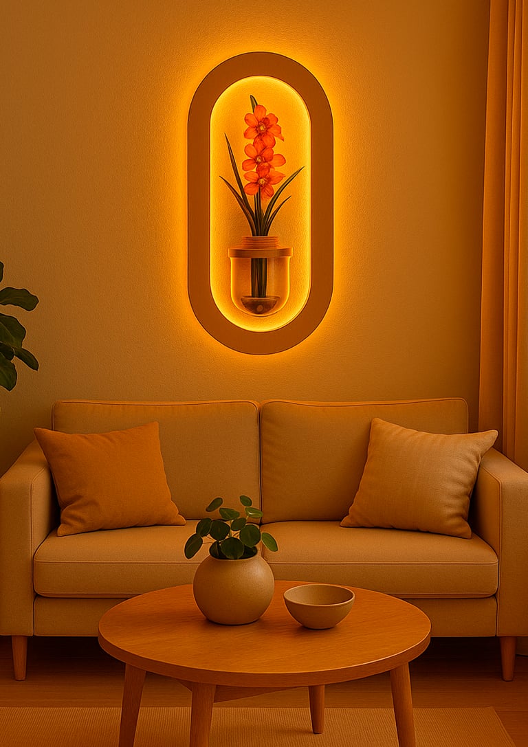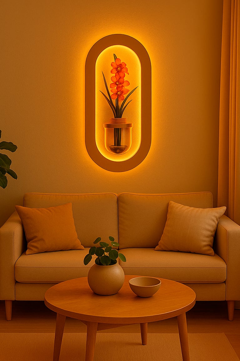 Piezas decorativas con iluminación integrada que transforman cualquier muro en un punto focal moderno y elegante.